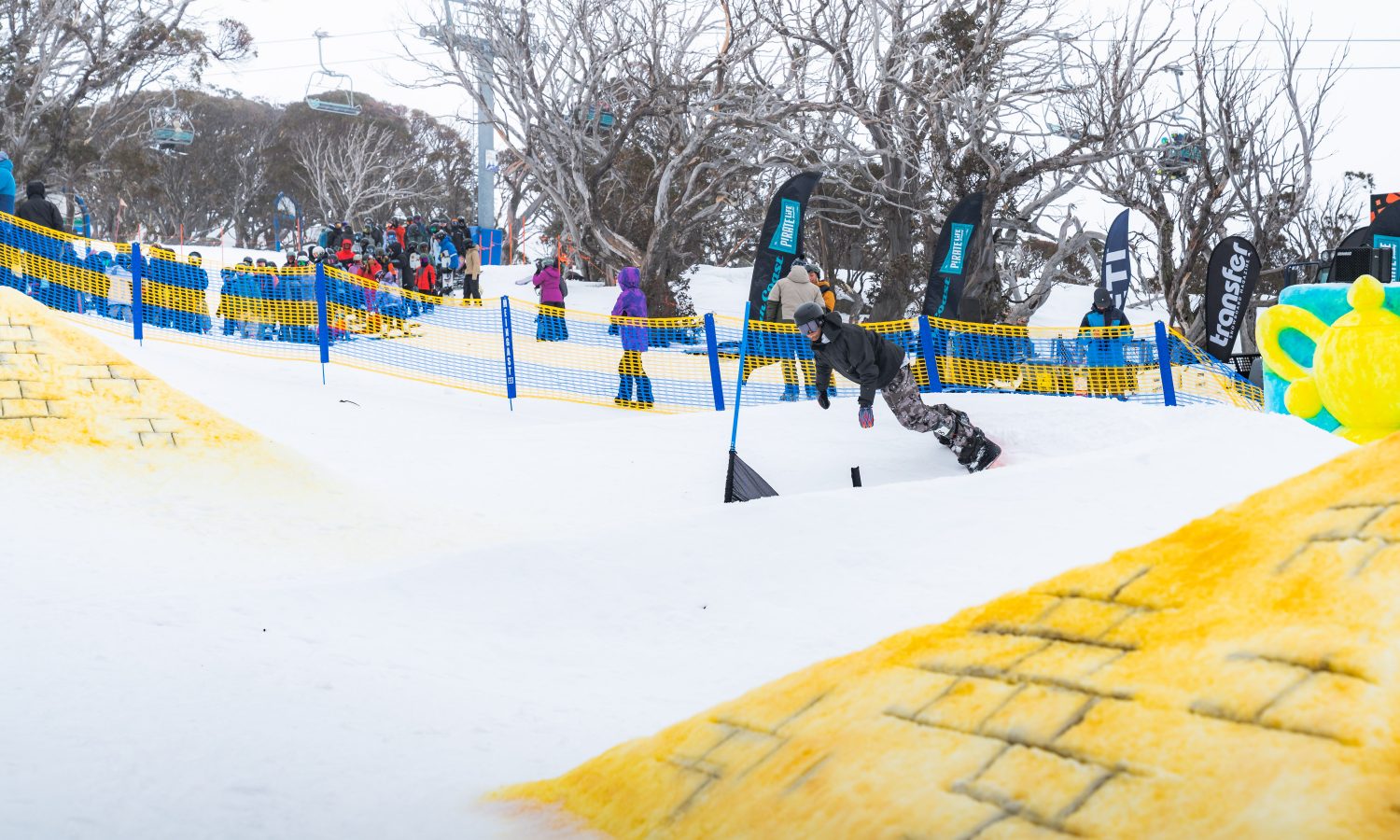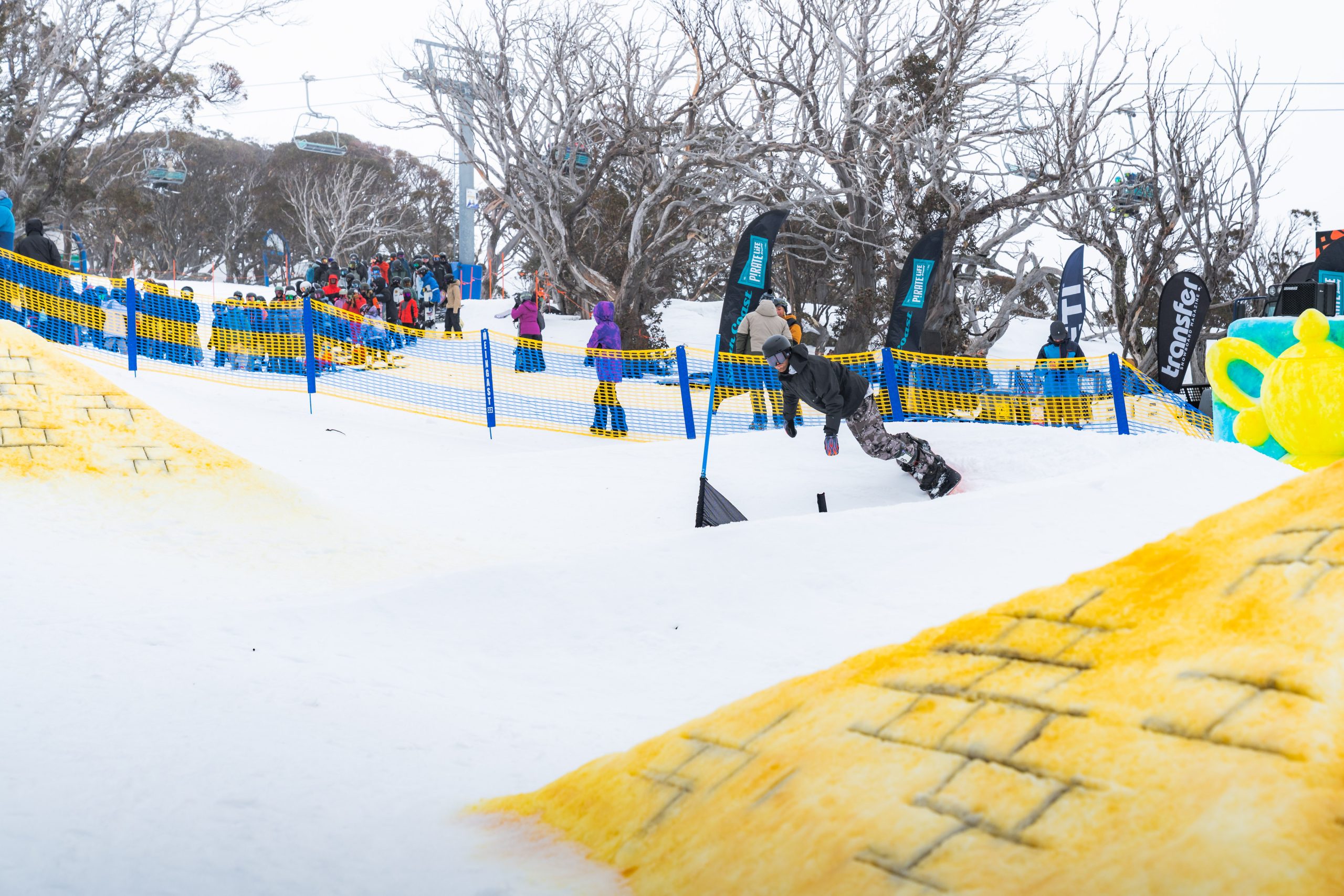 Open to all snowboarders, the creatively built course challenges intermediate to advanced riders, with a serious stack of prizes to match the hype.
